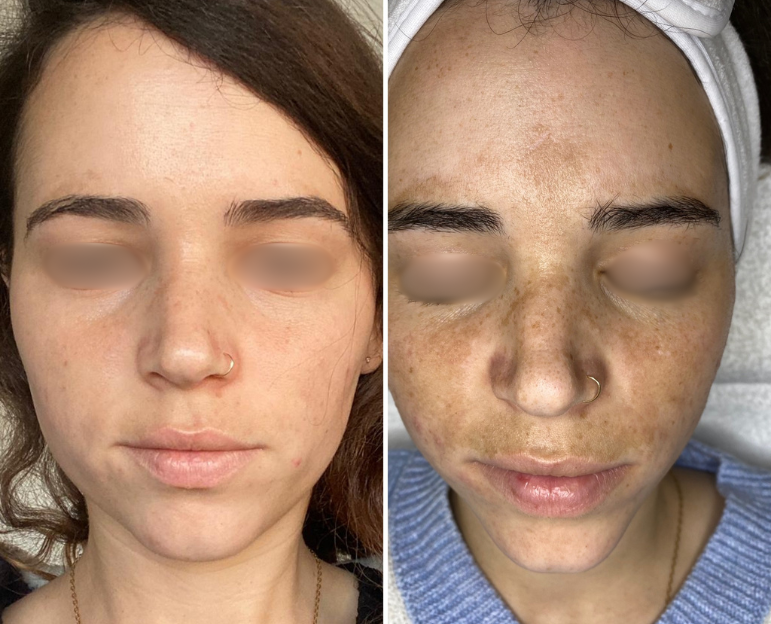 הטיפול כולל הוצאת שחורים ומסכות מותאמות אישית בהתאם לעומק וסוג הפיגמנטציה.